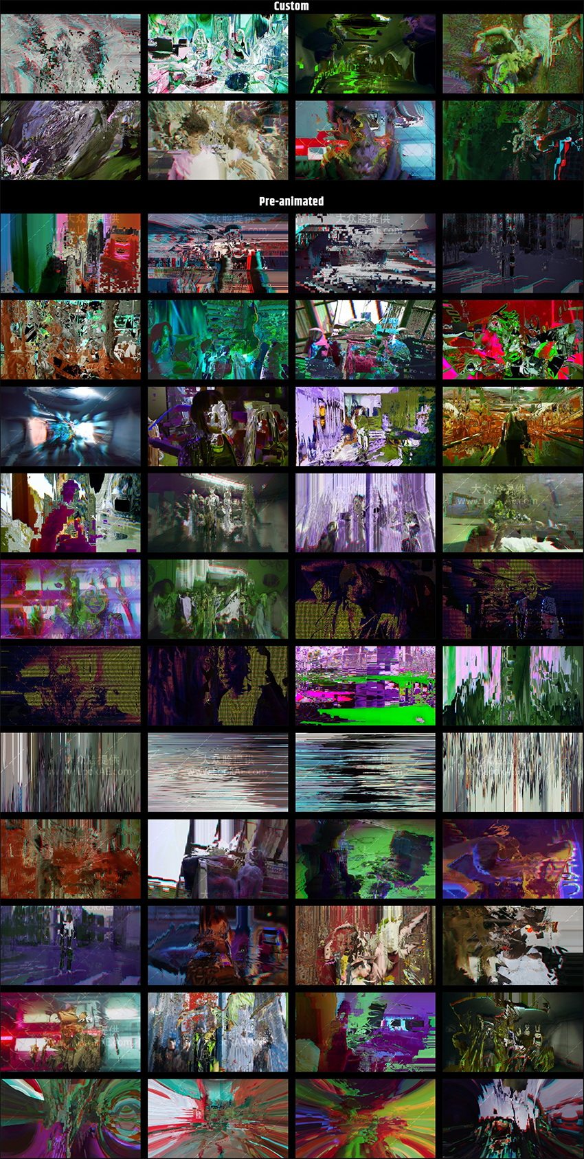 这是转场插件,提供52种数字故障扭曲失真毛刺干扰视觉转场动画预设。这个庞大的过渡包让您无需复杂的工作流程即可添加引人入胜的故障和扭曲,并通过壮观的视觉效果提升您的剪辑!插件还提供了一些参数控制,可自定义修改转场效果。